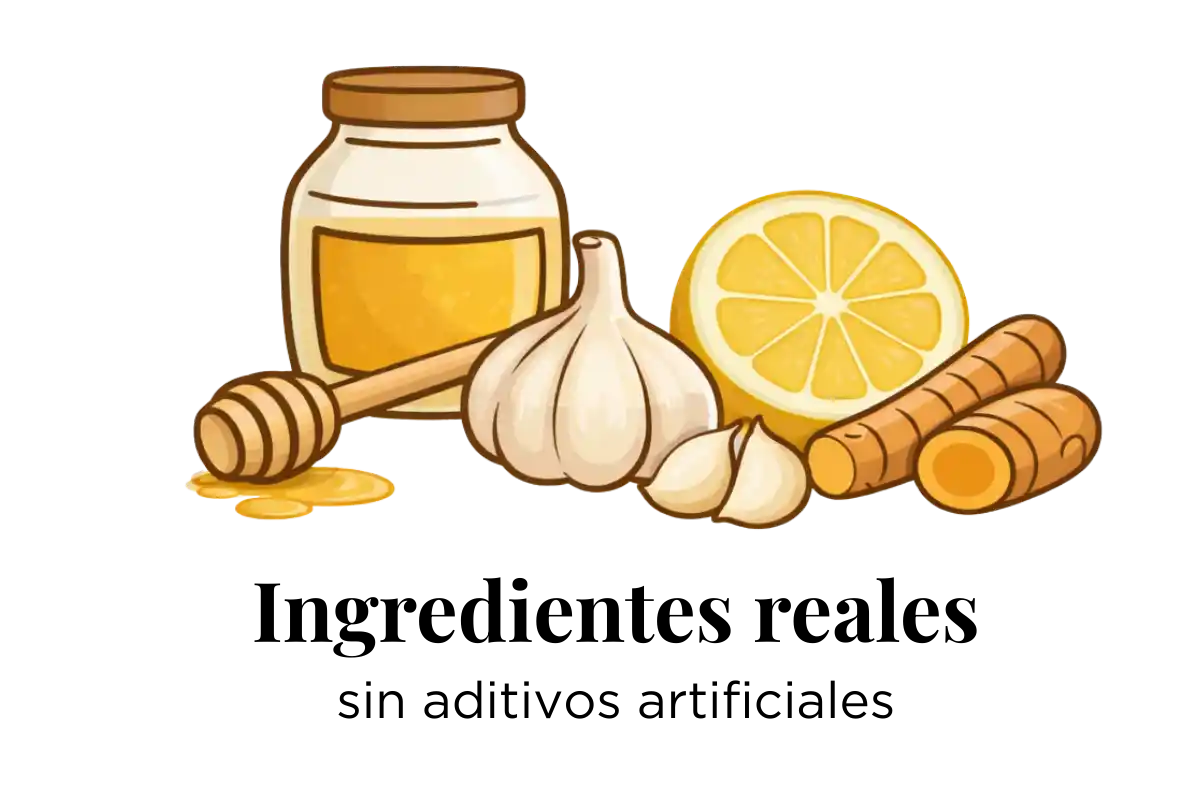 Elaborado con ingredientes de origen natural como miel de abeja, limón, ajo y especias seleccionadas.